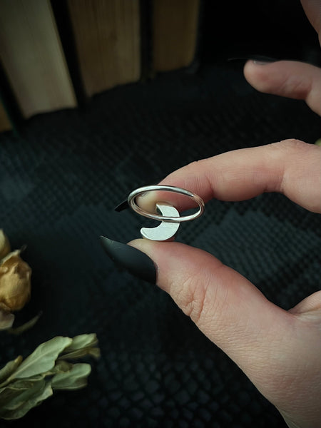 This product is made-to-order. Handmade sterling silver moon ring. A purple Amethyst crescent moon is set in a serrated bezel setting. A thin, simple round band completes this ring. The stone measures approximately 0.5 x 0.5 inches.